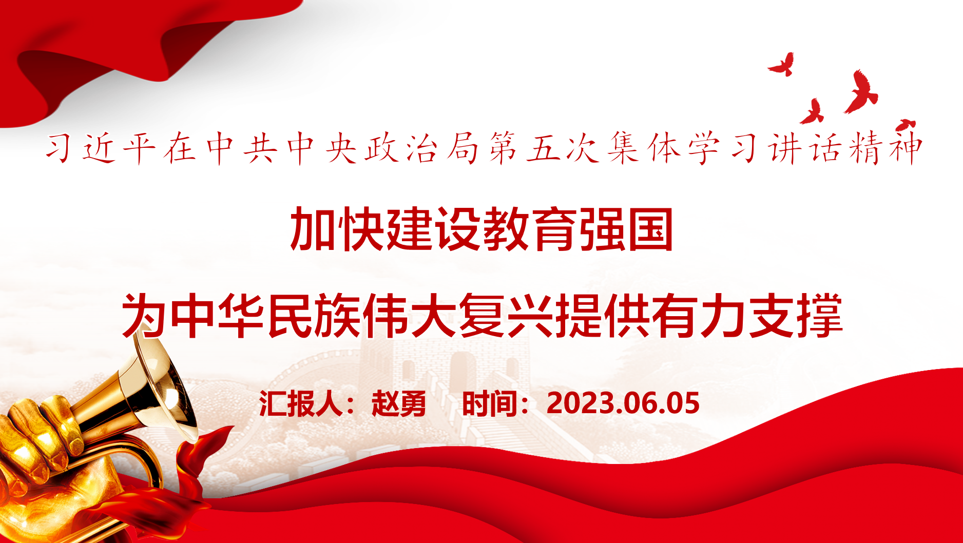 会上,党委委员赵勇围绕习近平在中共中央政治局第五次集体学习讲话精神,结合习近平总书记在北京育英公司考察时的重要讲话精神和浙江“千万工程”经验案例展开领学。他表示,建设教育强国是全党全社会的共同任务,要坚持和加强党对教育工作的全面领导。全党全国人民要坚定信心、久久为功,为早日实现教育强国目标而共同努力。广大教师要牢记为党育人、为国育才的初心使命,以人民教育家为榜样,以德立身、以德立学、以德施教。浙江“千万工程”经验,对推动学习贯彻习近平新时代中国特色社会主义思想走深走实,完成艰巨繁重的改革发展稳定任务,具有特殊重要意义。