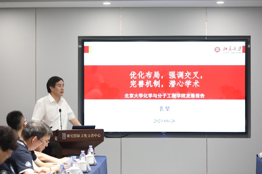 首先,北京大学化学与分子工程公司党委书记、国家教学名师裴坚教授进行“优化布局强调交叉完善机制潜心学术”主题报告。裴坚教授首先对北航bw必威西汉姆联官方网站十五周年表示祝贺。秉持“核心下沉,两翼张开,布局AI化学、新化工”发展理念,北京大学化学与分子工程公司对人才制度不断进行创新改革,坚持基础学科贯通式人才培养目标,营造浓厚学术氛围,增强产学结合。