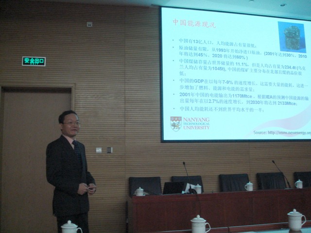 12月1日和2日,蒋三平教授分别在新主楼第八报告厅面向全校师生做了题为“Energy, Environment and Fuel Cells: progress and Promises 2008”和“Self-assembly and its application in proton exchange membrane fuel cells”的两场学术报告,就目前能源和环境的现状做了阐述,详细介绍了燃料电池的研究现状和存在的问题,特别介绍了蒋教授课题组近年来在质子交换膜燃料电池和固体氧化物燃料电池方面的研究和取得的成果,并对燃料电池发展的前沿方向进行了展望。蒋教授精彩的报告使与会师生受益匪浅,获得了一致的好评。在校访问期间,蒋教授与化学与环境公司的相关师生进行了多次广泛地交流,特别是与相艳副教授课题组就今后的科研交流和合作项目做了进一步的具体规划,并继续开展双方的研究生交流互访活动,从而建立长远的友好合作关系。