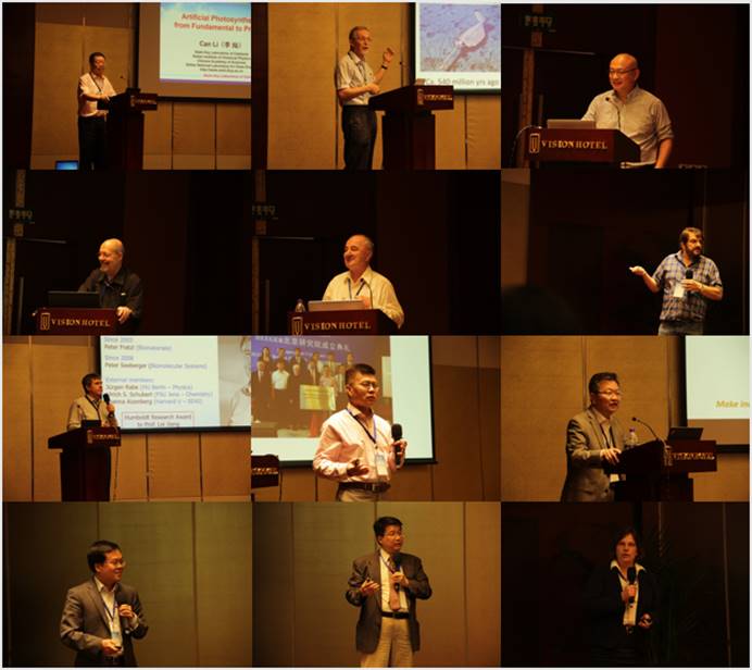 接着,十几位国内外学术大师带来了精彩的学术报告,中国科公司大连化学物理研究所的李灿院士做了题为“ArtificialPhotosynthesis: from Fundamental to Practice”的报告,介绍了他们团队在人工光合作用领域所做的工作。以色列魏兹曼研究所的Jacob Klein院士做了题为“BioinspiredSelf-lubricating Hydrogels”的报告,介绍了他们团队关于仿膝软骨的自润滑水凝胶方面的工作。江雷院士做了题为“Smart InterfacialMaterials from Super-Wettability to Binary Cooperative Complementary Systems”的报告,提出了量子限域超流方面的学术新概念。美国德克萨斯大学达拉斯分校的Ray Baughman院士做了题为“HarvestingTorsional and Tensile Mechanical Energy as Electrical Energy Using NanofiberYarns”的报告,介绍了其课题组在人工肌肉方面的研究进展。美国哈佛大学的David Weitz院士做了题为“StructuringMaterials for New Functionality with Droplet Templates”的报告,为我们介绍了Droplet Template这种新方法。德国马克斯-普朗克研究所的PeterFratzl院士做了题为“Architectured Active Materials”的报告,介绍了他们团队在天然结构材料以及智能响应等方面的工作进展。美国劳伦斯国家实验室的Antoni P. Tomsia教授、美国阿克伦大学的Xiong Gong教授、美国乔治亚理工公司的Hsu-Pin Wang教授、美国西北大学的黄嘉兴教授和SonBinh T. Nguyen教授、美国达特茅斯公司的Ulrike G.K. Wegst教授分别介绍了他们在仿生领域的工作以及前沿进展。